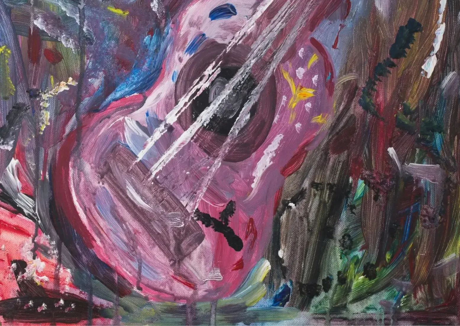 הציור, שנקרא ציור של גיטרה, מתאר גיטרה שנראית כגוף שנמצא בתנועה, בתוך עולם פנימי עמוק